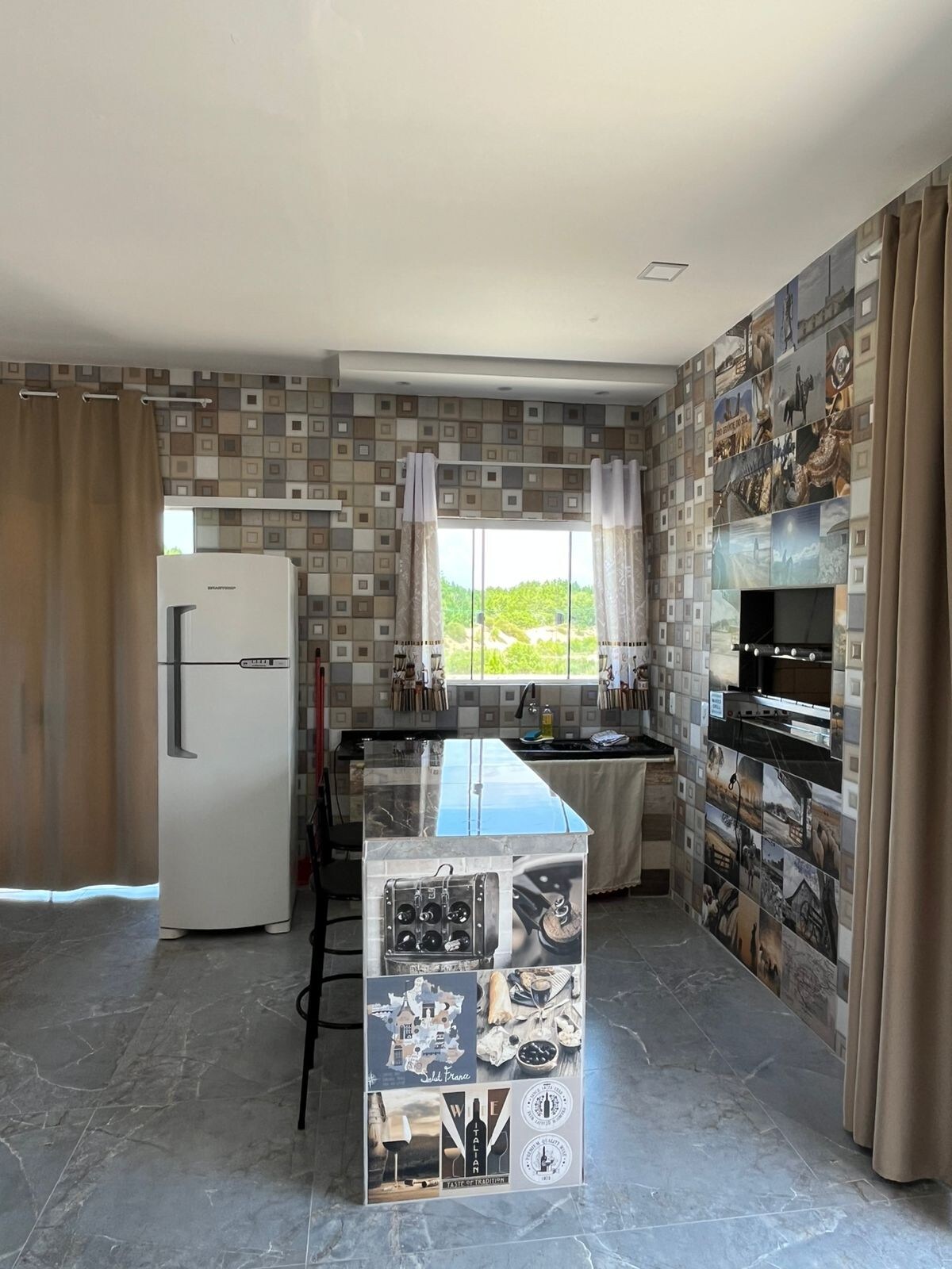 Fastighet med högt i tak och vackert inredd för att tillgodose våra gäster. Det är en rymlig och bekväm studio! 30 m2 väl upplyst och med bekvämligheter. Den ligger på baksidan av ägarnas bostad men med en separat ingång. Beläget 400 meter från Molhes-stranden och 100 meter från gastronomiska vägen. Det finns redskap för att laga små måltider, men om du föredrar det finns de bästa restaurangerna i staden i närheten! Bageri, stormarknad och pizzeria finns också i närheten