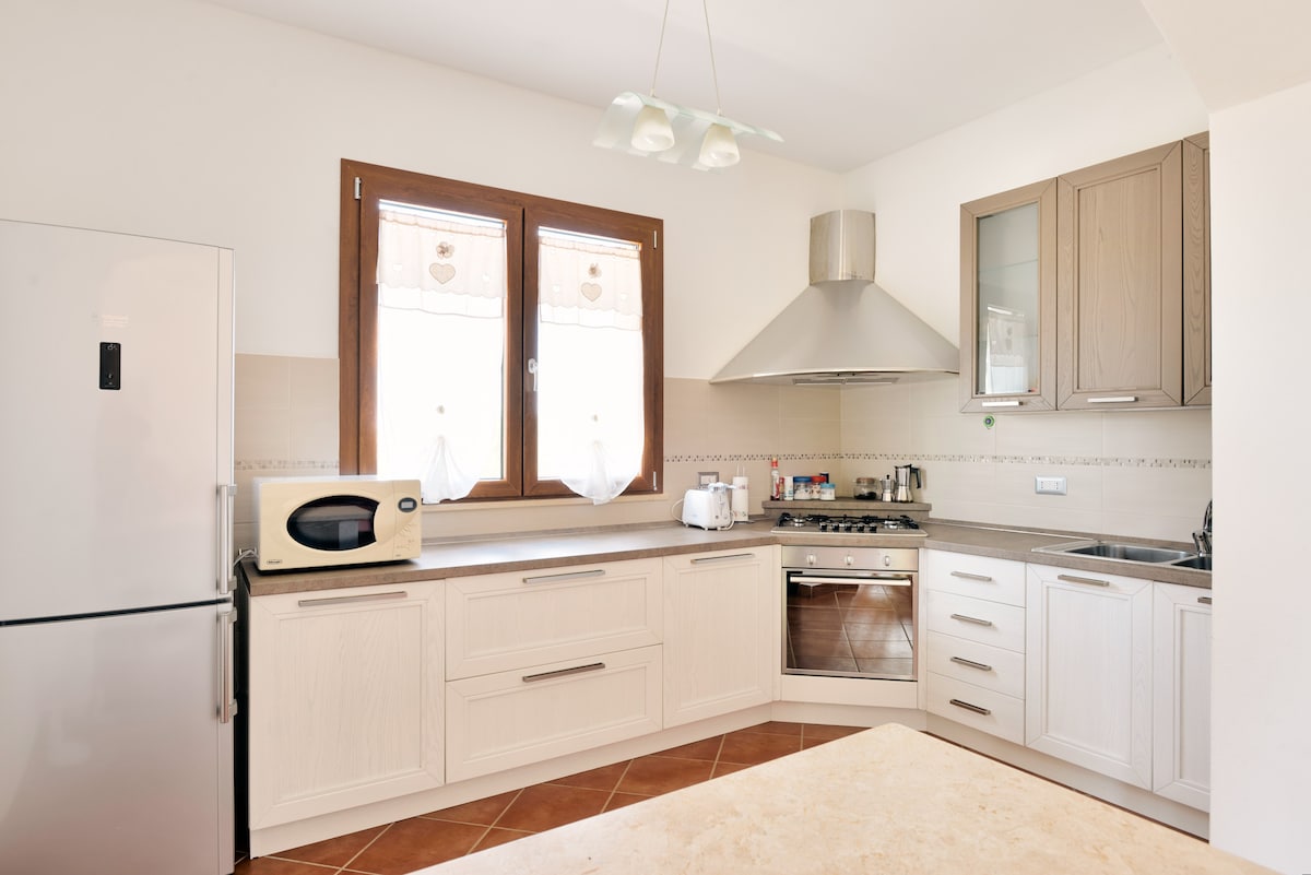Lägenhet på bottenvåningen, med luftkonditionering, wi-fi, ett vardagsrum med en bäddsoffa och ett matbord för 6 personer, ett utrymme utrustat som en kokvrå med spis, ugn, kylskåp och allt du behöver, ett sovrum med dubbelsäng, ett badrum med dusch, tvättmaskin, hårtork, strykjärn, gratisprodukter; utanför finns en grill, och från den bakre ingången kan du också komma åt en vedeldad ugn, och naturligtvis en parkeringsplats.