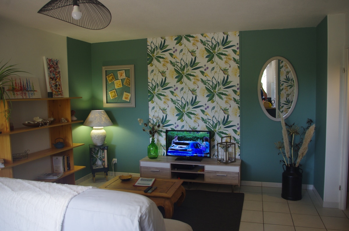 Välkommen till Indigo getaway 💙 Mysig lägenhet på 48 m² på 1:a våningen i en liten lugn bostad i Tournefeuille, 20 minuter från centrala Toulouse i 🚗 Genom att kombinera komfort, välbefinnande och modernitet erbjuder det en privat bastu för två🧖♀️, en stjärnklar himmel ✨ och ett tvåsitsigt balneobadkar 🛁 för stunder av absolut avkoppling Perfekt för par, familjer, vänner eller professionella resenärer. 🌟 Komfort, charm och avkoppling väntar på dig... Boka snart!