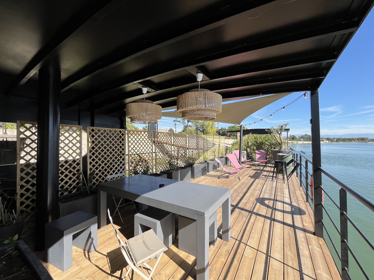 BLUE**** Perfekt belägen vid Rhonefloden, i hjärtat av den lilla staden Tain l'Hermitage, denna vackra lägenhet med luftkonditionering kommer att förföra dig med sin charm och lugn. Den har en magnifik terrass vid Rhônes strand. De 2 sovrummen är utrustade med bekväma sängar på 160 cm och 140 cm. Det stora vardagsrummet badat i ljus ger dig en fantastisk utsikt över floden. Du kommer att uppskatta närheten till restauranger, butiker, vinhandlare ..