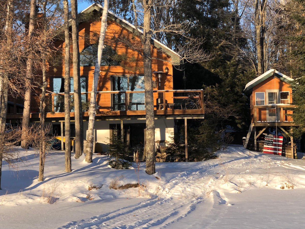 Resting on Star Lake and tucked into the north woods, this tiny home offers the tranquility you need to completely decompress. The Sasquatch Shores cabin is right on Star Lake, a quiet no wake lake that gives you the peace and quiet you want. Watch the sunset off of the dock or cast a line into the water! The cabin is also situated right on the ATV trail. The main offers a King sized bed and the guest room offers a Queen/Twin Loft bed. There is also sectional couch as a sleeping option!