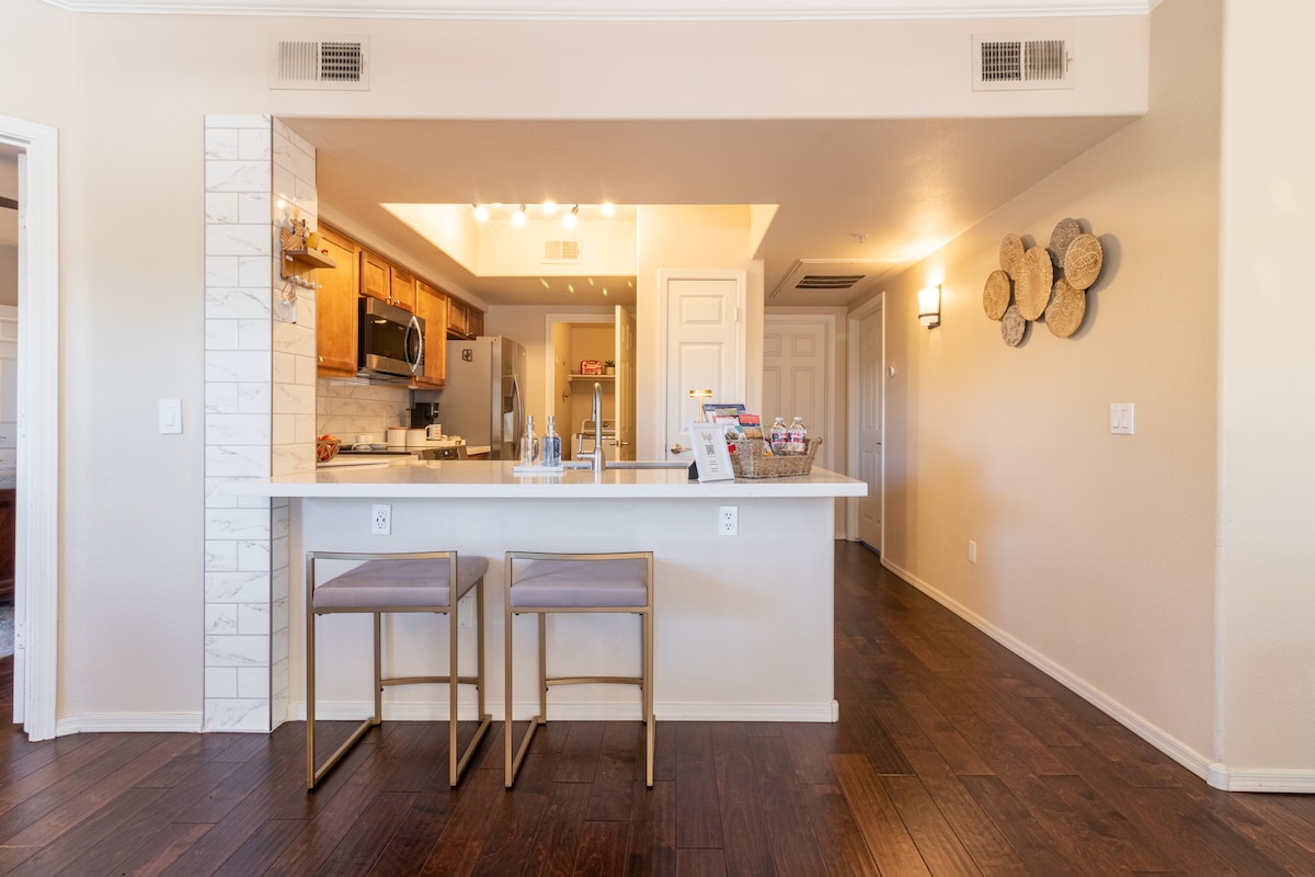 ✨ Desert days, resort-style nights ✨ Unwind in a stylish 2-bedroom condo tucked inside a gated North Scottsdale community—just 5 minutes to Kierland Commons and Scottsdale Quarter. WHY YOU’LL LOVE IT • King-size primary suite + queen guest room + queen sofa sleeper • Heated pool with hot tub, sun loungers and BBQ grills only steps away • Private balcony for morning coffee or sunset cocktails • Fast Wi-Fi and 3 smart TVs with full Fubo package • 2-car garage and keyless entry for easy access