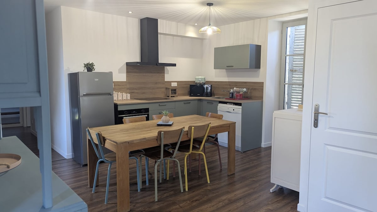 Apartment' le Kozi - Downtown - 5 min promenad till tågstationen Helrenoverat, varmt och nära till alla bekvämligheter. Erbjuder 2 sovrum med senaste sängkläder (dubbelsäng i 140) och var och en utrustad med ett individuellt badrum. Ett vardagsrum med sitt fullt utrustade kök för din komfort. Parkeringsplatser i närheten. Sängar bäddade/badlakan tillhandahålls. Allt du behöver göra är att lägga ner dina väskor. Självständig incheckning med nyckelbox. (spjälsäng + barnstol på begäran) GRATIS WIFI