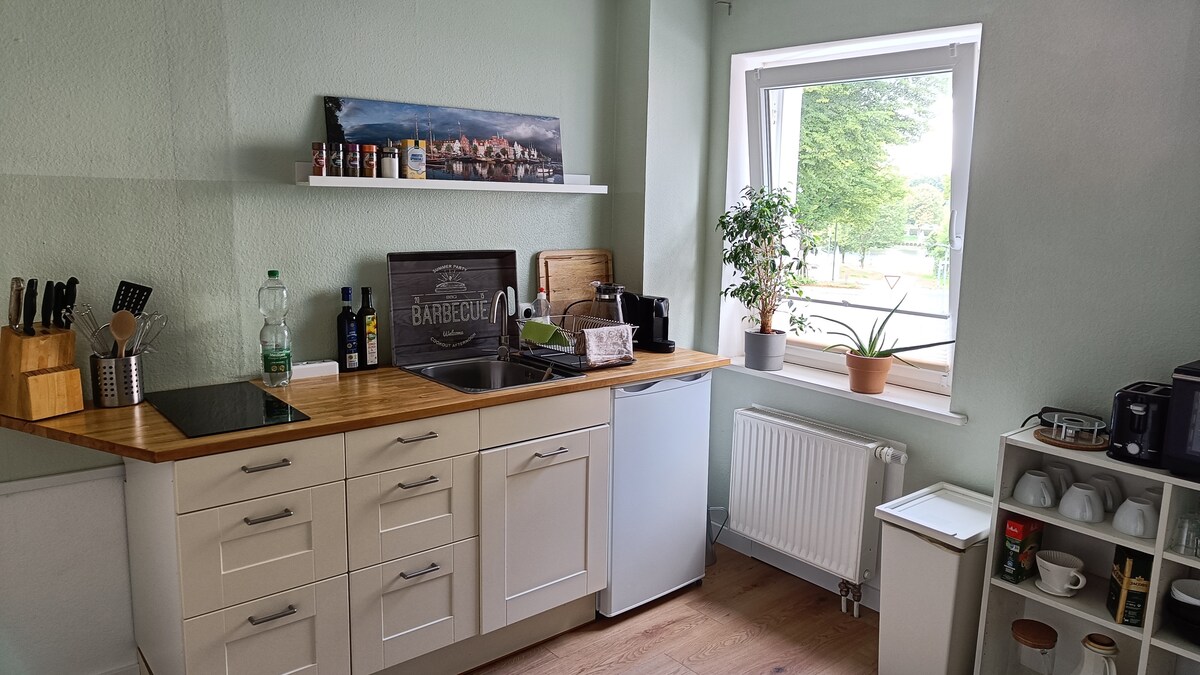 Lägenheten renoverades 2020 och helt renoverad i processen. Den har plats för upp till fyra personer och är super centralt beläget. Om du gillar action ligger flodpromenaden ca. 2 minuter bort. Om du föredrar en lugn plats ligger lägenheten på andra våningen och har en lugn takterrass med utsikt över trädgården. Att gå till järnvägsstationen (anslutning till Lübeck) tar 5-10 minuter. Även om du inte kan se vattnet kan du se de stora färjorna från sovrumsfönstret.