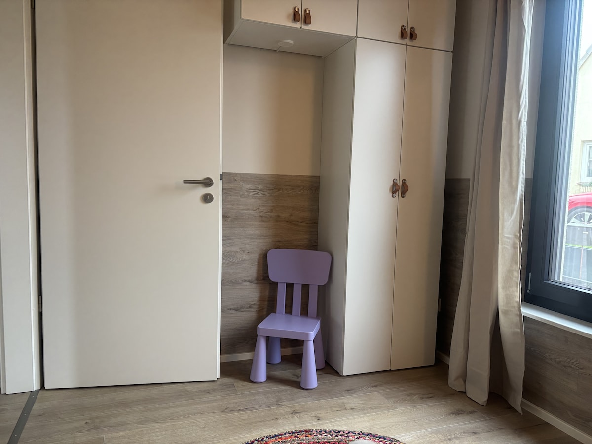 Lägenheten renoverades 2020 och helt renoverad i processen. Den har plats för upp till fyra personer och är super centralt beläget. Om du gillar action ligger flodpromenaden ca. 2 minuter bort. Om du föredrar en lugn plats ligger lägenheten på andra våningen och har en lugn takterrass med utsikt över trädgården. Att gå till järnvägsstationen (anslutning till Lübeck) tar 5-10 minuter. Även om du inte kan se vattnet kan du se de stora färjorna från sovrumsfönstret.