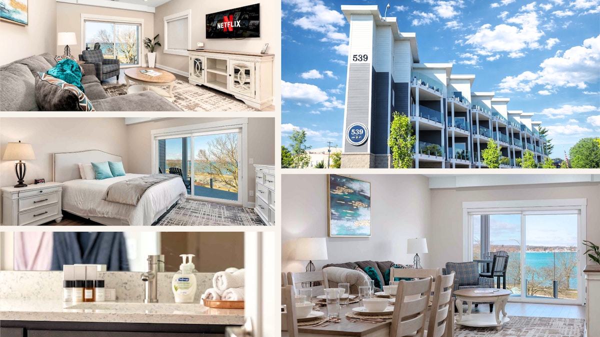 🌊 Beachfront Bliss – Step right onto the sand from your living room! 🚶♀️ Just a 2-minute walk to the scenic TART Trail for biking and strolling. 🚗 Only a 9-minute drive to downtown Traverse City’s wineries, breweries, and restaurants. 🔥 Private Indoor Sauna – Unwind in our in-unit sauna after a day of exploring! 🛋️ Cozy & Stylish – Relax on updated furniture while soaking in the bay views. 📶 Stay Connected – Free Wi-Fi with stunning waterfront scenery.