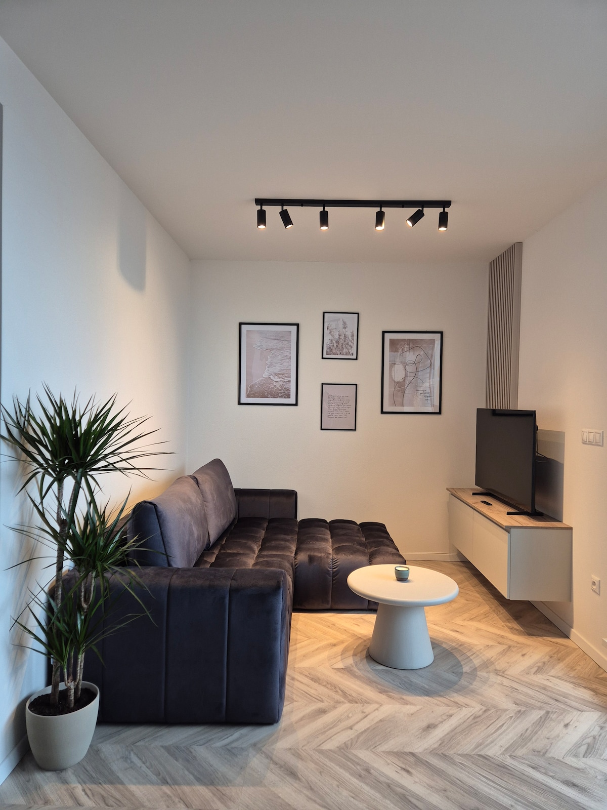 Lägenheten erbjuder en storslagen utsikt över S % {smartňava reservoar. Den består av ett separat badrum med dusch, ett fullt utrustat kök och ett vardagsrum där en soffa finns, som, när den fälls ut, blir till en fullstor säng på 180 x 200 cm (22 cm madrasshöjd). Lägenheten har också en balkong med sittplatser. Gästerna kan också använda en utomhuspool med uteplats och solstolar (förväntad sommar 2025) och stadscyklar som vi erbjuder gratis för gäster.