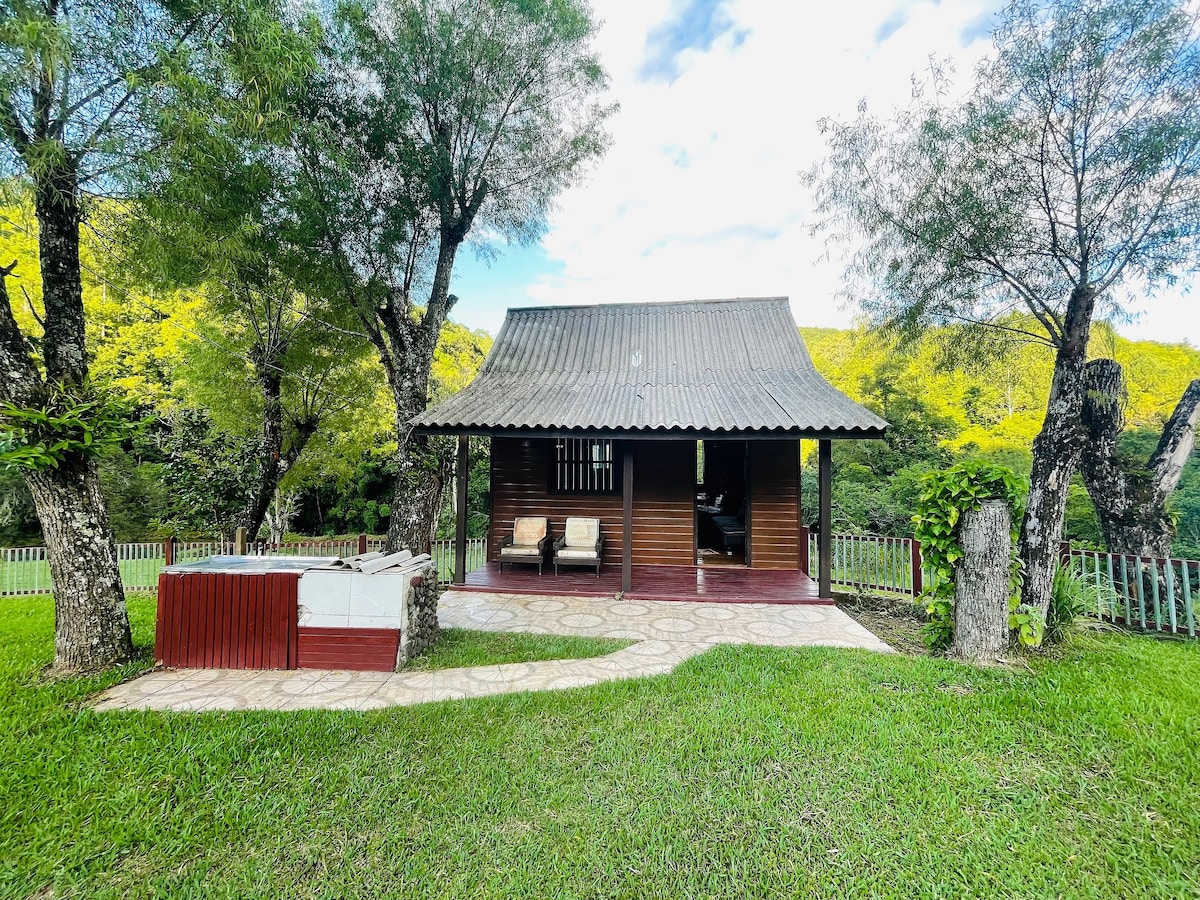 Koppla av i detta lugna utrymme, fullt av stil och komfort! Mysig Cabana, med tillgång till alla asfalterade, en vacker utsikt och mycket natur i omgivningen. Nära centrum av Três Coroas, Buddhist Temple, Raft Park och bara 22 km från Gramado. Toppen att njuta av som ett par, eller som en familj. Vi har en pool, ett upphängt hängmattområde, en oändlig gunga, en hängmatta, en eldstad, en grill, ett badkar, en varm och kall delning, en elektrisk öppen spis, Wi-Fi, en smart-TV... kort sagt, allt för att du ska kunna skapa utmärkta minnen!