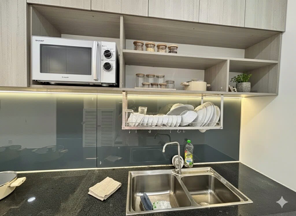 Lägenheten har utsikt över en lugn och fridfull pool. Lägenheten är fullt utrustad med möbler som lämpar sig för gäster som stannar från några dagar till en månad. Det finns ett kök som är redo att laga mat bekvämt och rent. Filtar, lakan, kuddar, madrasser, handdukar, duschtvål, schampo, rengörs och byts ut varje dag. Tillgängliga bekvämligheter inkluderar pool, lekplats, konstgjort hav, många närbutiker. Du kan checka in själv eller få personlig vägledning från vårt entusiastiska konsultteam, du kommer att uppleva känslan av att vara i ditt andra hem