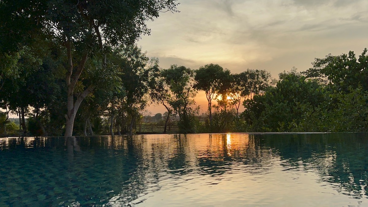 PHONG TOM RETREAT – En fridfull tropisk flykt. Phong Tom Retreat är en privat fristad omgiven av grönska och öppen himmel. Med ren vit arkitektur, naturliga tegelstensdetaljer och frodiga växter känns utrymmet lugnt, luftigt och inbjudande. Njut av lugna morgnar, avkopplande eftermiddagar i trädgården och mysiga kvällar vid utomhuseldstaden. Familjevänligt med en liten sandlekplats för barn. Djurvänligt — lurviga följeslagare är välkomna (vänligen informera oss i förväg).