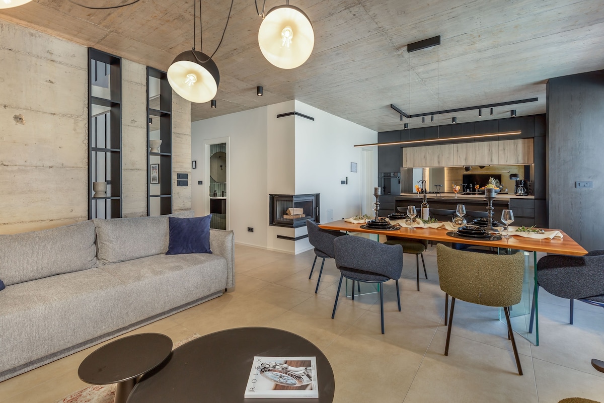 Boendet ligger i nya moderna svartvita lägenheter belägna i Dramalj nära Crikvenica. Huset ligger 150 bort från havet och har en hisnande utsikt över havet. Njut av ditt glas vin eller morgonkaffe på en stor balkong och glöm alla dina bekymmer. Vår värd Monika kommer att se till att du har allt du behöver och kommer att vara tillgänglig hela tiden under din vistelse. Tvätta bort alla dina bekymmer i vår pool med jacuzzi. Poolen är uppvärmd vid 28°C.