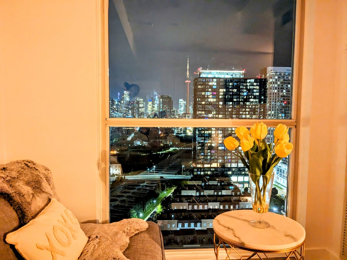 Ett sovrum möblerat, rymligt, mittemot Metro Convention Centre, Skydome/Rogers Centre hemmet för Blue Jays, CN Tower och mycket mer. Oavsett om du är i stan för affärer eller nöje. Njut av en elegant upplevelse på detta centralt belägna ställe. Det är perfekt för ett par att njuta av allt som Toronto har att erbjuda. Steg från Union Station, Underground Path, Scotia Arena och mycket mer. Absolut inga FESTER! Och INGEN RÖKNING! Det kommer att resultera i omedelbar borttagning.