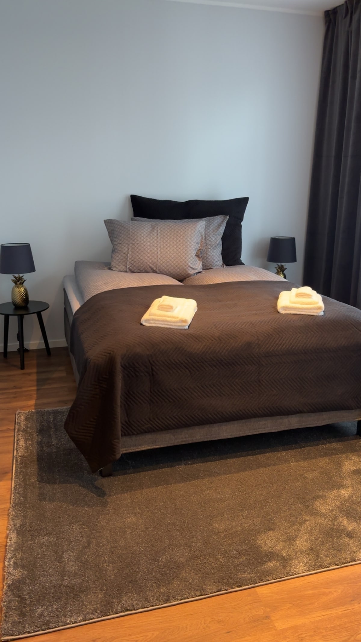 Njut av en elegant upplevelse med ett centralt läge. Denna pärla i en lägenhet ligger nära till allt Tromsø har att erbjuda. Vilket gör det enkelt att planera din semester. Kort avstånd från Tromsø flygplats. Bekvämligheter som restaurang, kaféer, bageri, huvudgata och busshållplats finns i omedelbar närhet. Arctic Cathedral ligger strax ovanför bron, en kort promenad från lägenheten. Norrsken kan avnjutas direkt från lägenheten. Detta är den perfekta utgångspunkten för en oförglömlig semester.
