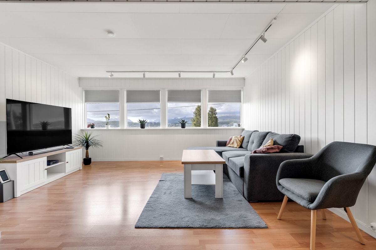 Välkommen till denna rymliga och mysiga lägenhet i Tromsø, perfekt för familjer eller vänner som vill ha en bekväm vistelse med komfort!🖤 Lugnt och rymligt utanför centrum, men samtidigt ett kort avstånd in till staden. Cirka 10 minuter med bil till centrum, medan bussförbindelsen tar ca. 20–25 minuter. Fri parkering för upp till 2 bilar. Närmaste mataffär ligger bara 850 meter bort.