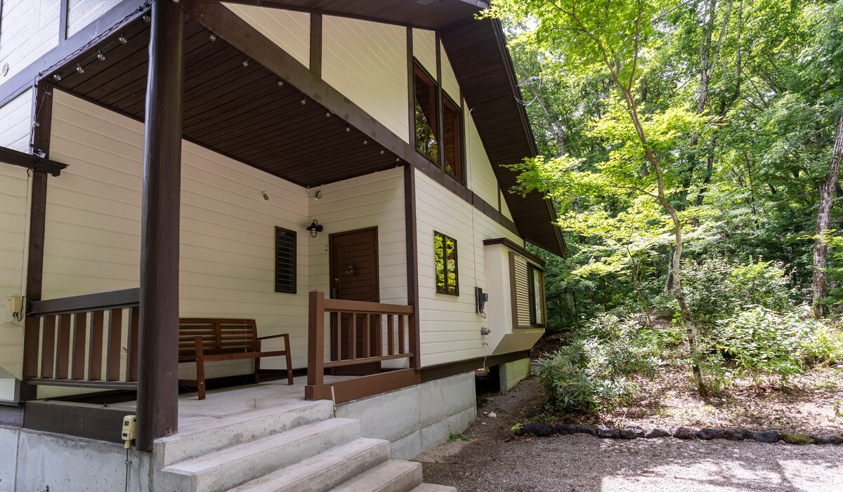 Hela stugan i en skog på en höjd av 1100 m.Björkträd hälsar dig välkommen från entrén och njuter av naturen i lugn miljö! Inredningen är inredd med gott om trä och grillning på det rymliga trädäcket. Minihytten är utrustad med en storbilds hemmabio. Vedspis med stora fönster, gjord av Waterford, Island. Det finns också bra tillgång till Manza Onsen, Kusatsu Onsen, Karuizawa City, Karuizawa Snow Park, Parcolette Tsumagoi Ski Resort och Kazawa Ski Resort (80 % soligt på vintern). Gångavstånd till Hotel Green Plaza Karuizawa dag varm källa (700 m). Karuizawa Toy Kingdom (4 minuter med bil).