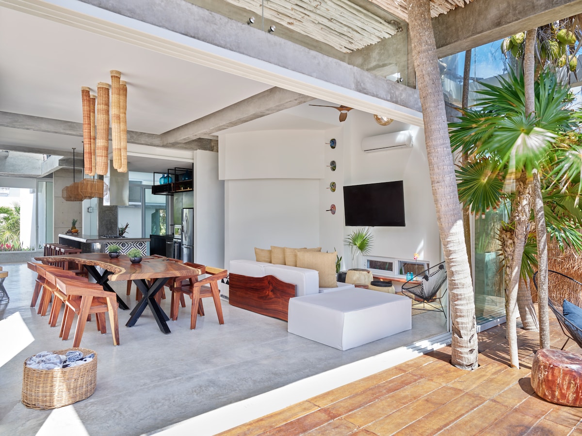 Lyxig design Penthouse ligger i Tulum som kommer med unika funktioner som dubbel höjd tak levande, stor takpool, ett lyxigt high-end högtalarsystem från Bang & Olufsen, vackra sängtextilier och stora utrymmen med unik dekoration som ligger i det trendigaste området i Tulum. Förutom concierge-tjänster erbjuder boendet 2 höghastighets fiberoptiska internetnätverk för den bästa servicen i Tulum. Detta fridfulla, eleganta och lugna ställe är en designhimmel!