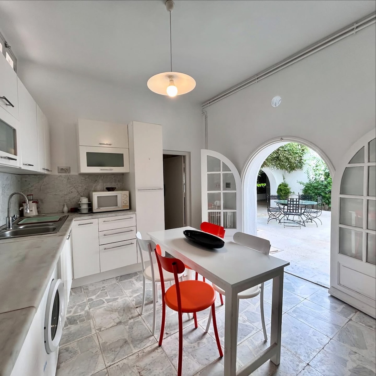 Helt oberoende av huset med 2 terrasser områden lounge 5 platser, nära havet (30 meter) nära från stadens centrum och butiker och stormarknader och kollektivtrafik 200 meter, flygplats 16 km och nära byn sidi bou Said (2km) den 13:e bästa byn i världen (2017) och Karthago och hans kvarlevor (4 km) 300 meter från promenaden och 2 stora parker i närheten grönska hörn läsning, skridskoåkning och vax tennis. En 800 m till de trendiga kaféerna och restaurangerna runda lådor på natten.