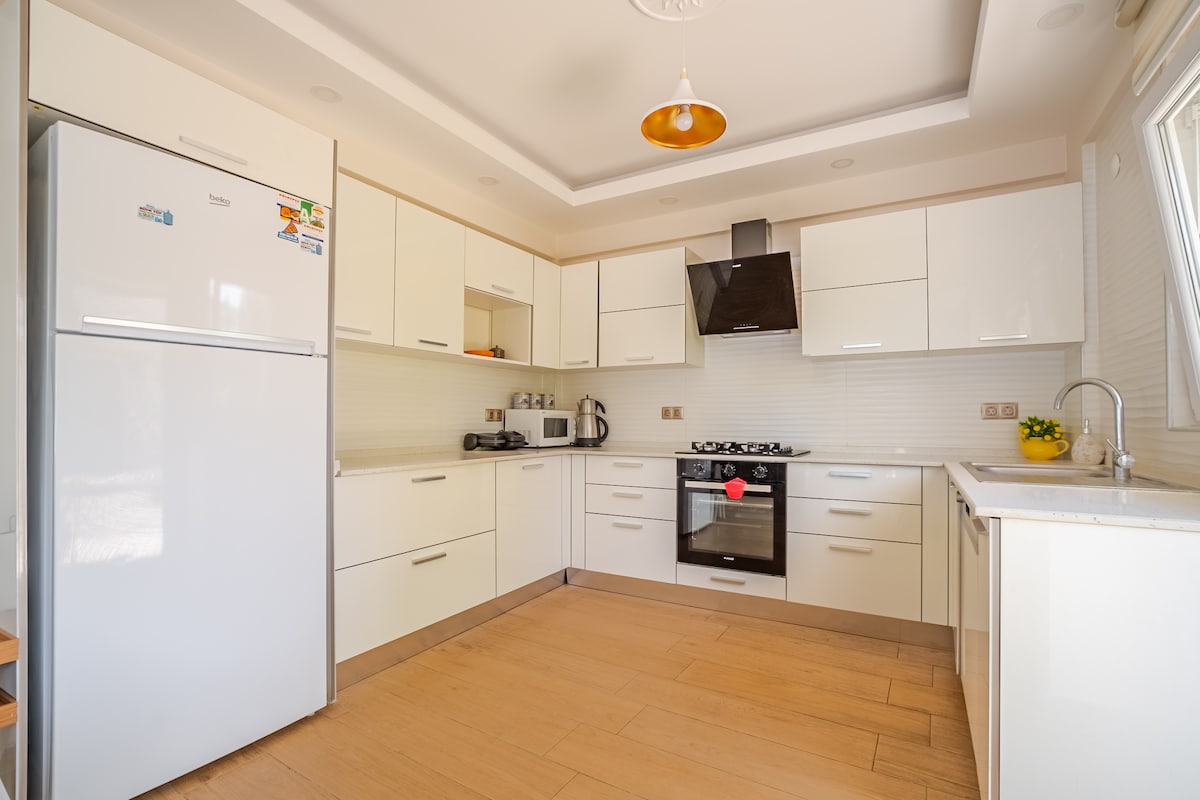 Vår lägenhet har totalt 100 kvm. Den består av 2 sovrum, en öppen kökshall , ett delat badrum och en toalett. Balkong finns. Alla rum har luftkonditionering wifi. Vår verksamhet ligger 1,5 km från centrum genom att gå till den stora grusstranden i genomsnitt, och det är 200 meter bort. Vi har tagit våra 16 års turism och förståelsen för gästfrihetsgäster till vårt eget hem. Vi välkomnar dig gärna till vårt eget hem. HÄLSOSAMMA DAGAR OCH GOD HELG...