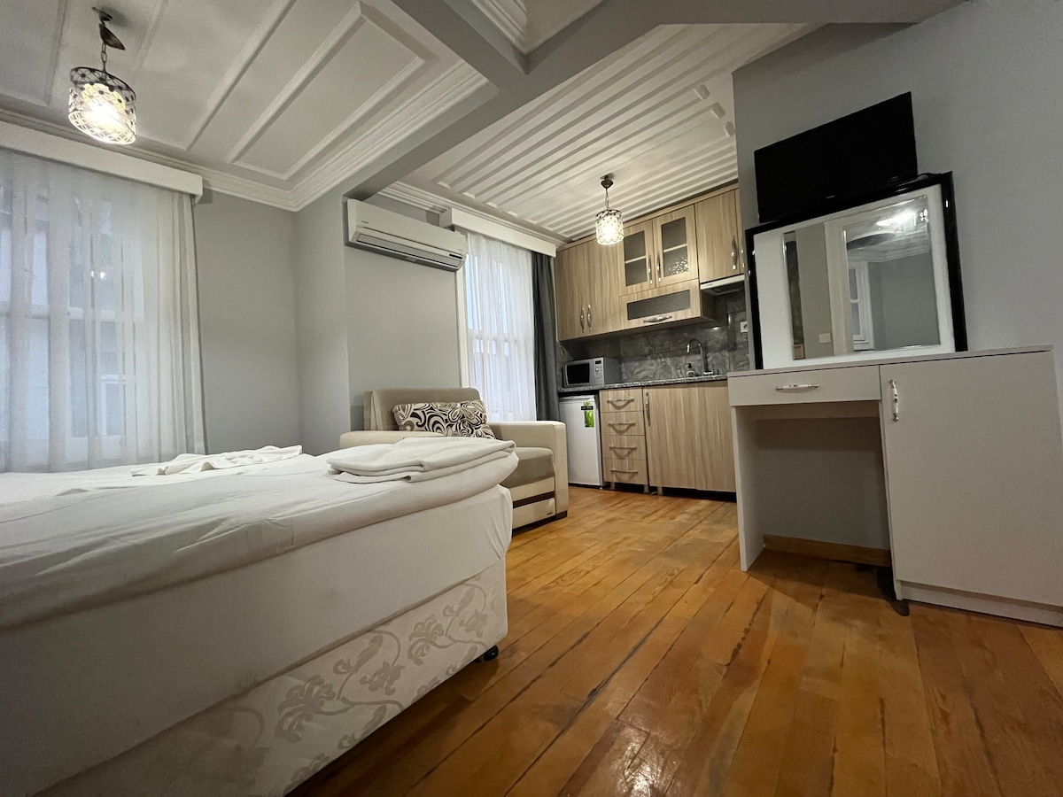 Privat studiolägenhet, privat badrum och privat ingång i hjärtat av Sultanahmet Old City, bara en min promenad till alla stora historiska sevärdheter Blå Sultanahmet Mosque & Hagia Sophia & Topkapı Palace & Underground Cistern och Sultanahmet Center. Lägenheten är utrustad med: *luftkonditionering *gratis wifi*Platt-TV med satellitkanaler *ortopediska madrasser *minikök *matbord/stolar *strykjärn och strykbräda *hårtork *handdukar, lakan och filtar, gratis städning.