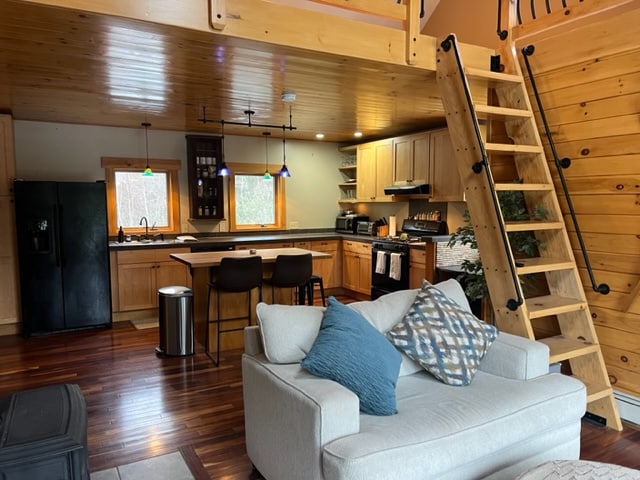 Vår fjällstuga har en uppdaterad modern design som får gäster att känna sig som hemma, men ändå ge värmen och den rustika charmen i en timmerstuga. Vår stuga är en idealisk tillflyktsort för familjer som vill ha en förlängd flykt. Mitt i hjärtat av White Mountains har din familj enkel tillgång till vandring, bad, cykel, fiske och så mycket mer. Njut av ditt morgonkaffe på verandan, laga hamburgare på det överdimensionerade däcket med gasolgrill och rosta marshmallows i eldstaden på bakgården