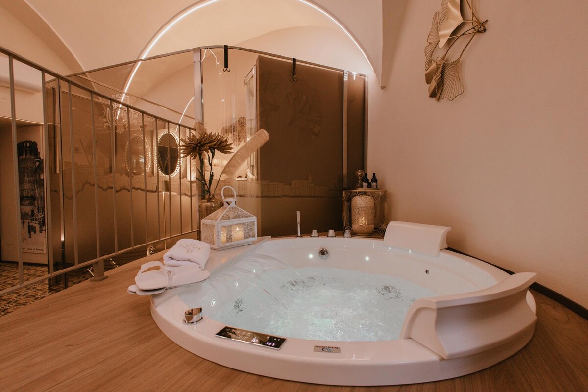 Du bor i ett riktigt medeltida torn som är fördelat på tre nivåer. På bottenvåningen hittar du ett vardagsrum med kök, på bottenvåningen ett sovrum med eget badrum och på andra våningen sviten med eget badrum. Inredningen är särskilt välkomnande och stämningsfull för närvaron av antika möbler i kombination med mer moderna textilier och tillbehör och för närvaron av konstnärlig keramik i vårt territorium. Utanför kan du njuta av en stor privat trädgård.