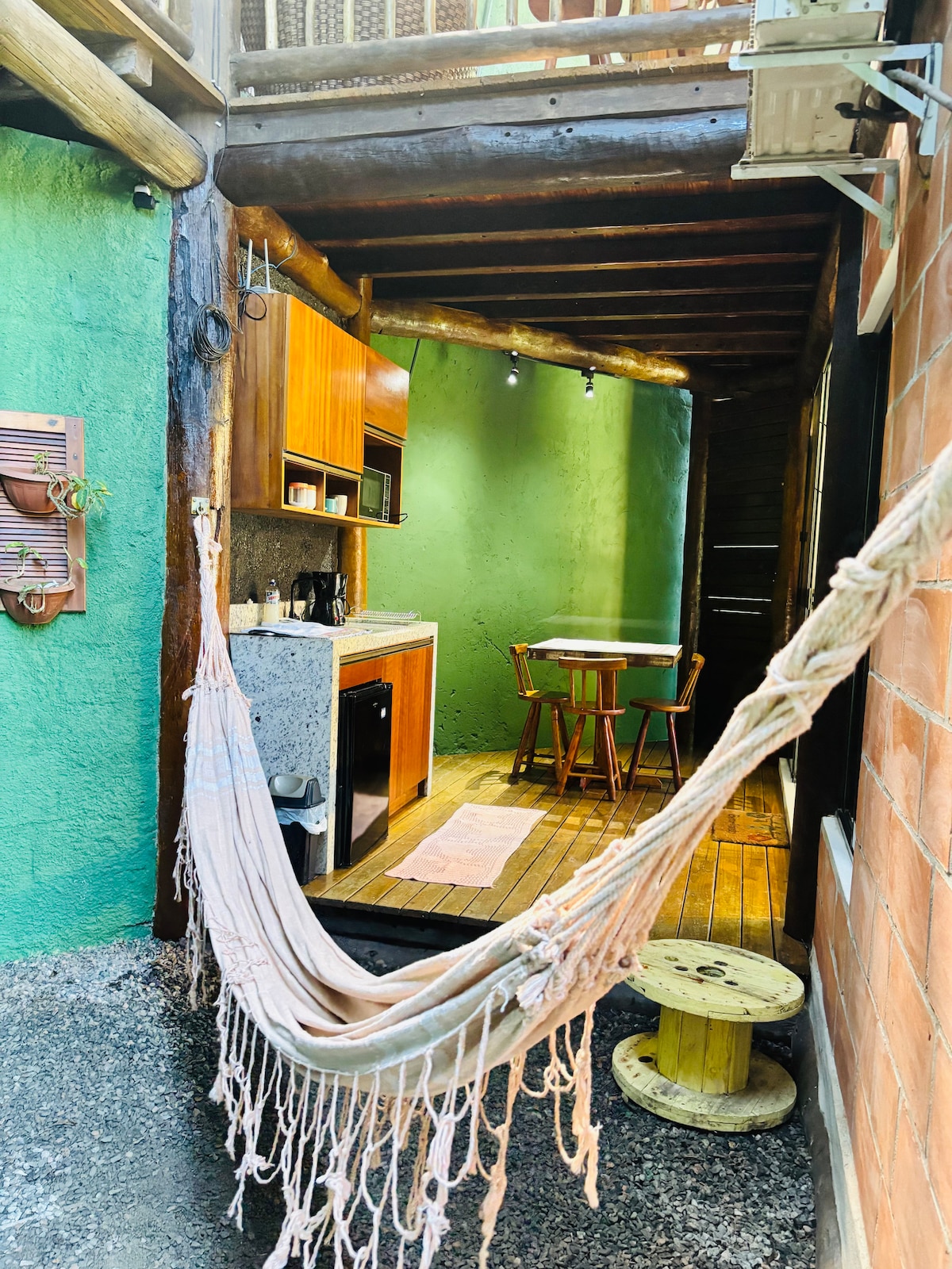 Chalé är gästernas favorit och är mysig, bekväm och rustik, perfekt för par som söker lugn och avskildhet, utan att vara långt från attraktionerna i Paratys historiska centrum. Allt i trä, tillverkat av oss tillsammans med lokala snickare. Det har ett utrustat kök, Wi-Fi, sängkläder av hög kvalitet, samt en täckt hängmatta mitt i trädgården. Ett exklusivt utrymme fullt av charm!