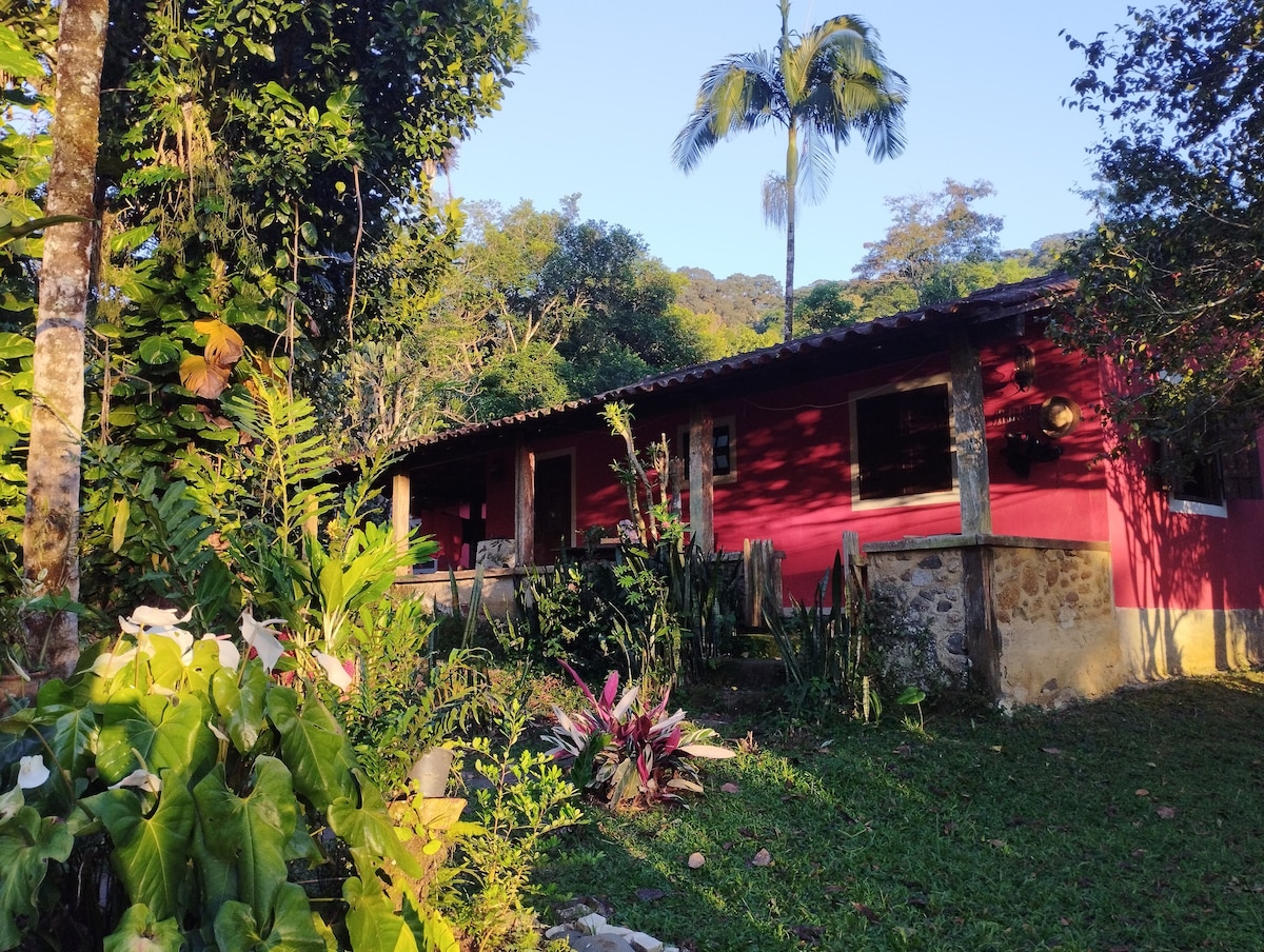 Unik reträtt i Atlanten skogen för lugna dagar bort från allt och en bekväm bas för att utforska Paraty och dess omgivning. Koppla bort, koppla av, njut av naturen, djurlivet och det rena vattnet i floden och vattenfallen som ligger vid fastighetsgränserna. Fågelskådarnas paradis, vi har registrerat mer än 190 arter på fastighetsområdet, och antalet fortsätter att växa. Endast 10 km från Paratys centrum.