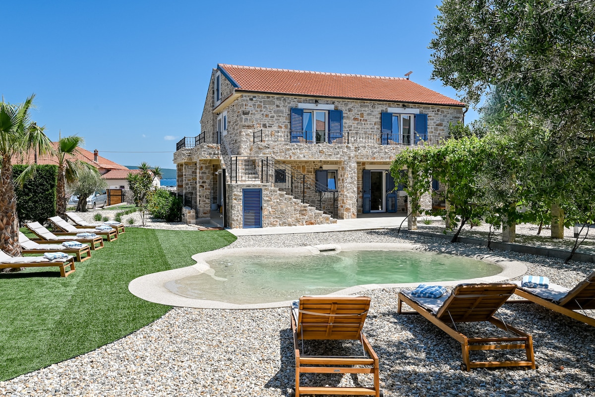 Välkommen till din privata oas mellan bergen och havet, bara 300 meter från stranden och steg från den vilda skönheten i Velebit och Paklenica nationalpark. Vår villa erbjuder den perfekta balansen mellan natur, komfort och välbefinnande, med en uppvärmd saltvattenpool, utomhusbubbelpool och en privat bastu för att koppla av efter en dags äventyr. Inuti hittar du 3 sovrum med eget badrum och ett mysigt hälsorum med en extrasäng, perfekt för familjer, par eller distansarbetare som söker lugn och utrymme.