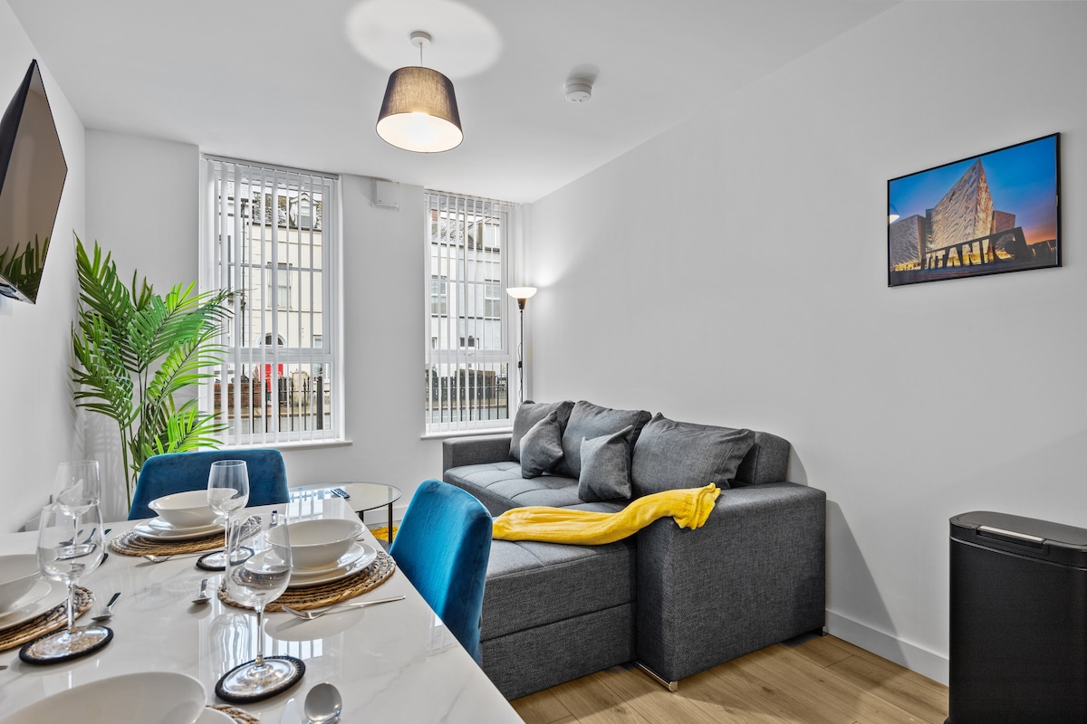 5 minuters promenad till centrum Gratis underjordisk parkering. Supersnabbt wifi Smart-tv Balkong med stadsutsikt 1 minuters promenad till butiker och restauranger Helt inga fester En perfekt plats att kalla sitt hem medan du utforskar allt Belfast har att erbjuda. Ta bort stressen från parkering med vår säkra underjordiska parkering. Vår moderna lägenhet rymmer upp till 4 personer, med två sängar och en bäddsoffa.