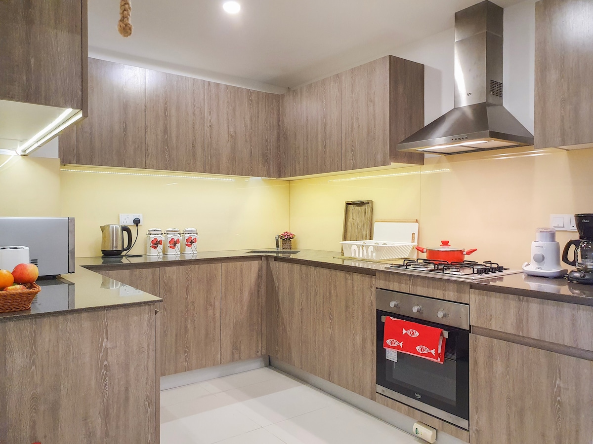 ✨Vi är nya.✨ Du kommer att uppleva hisnande utsikt från vår 14: e våningen, 3BR strandnära lägenhet. Fullt luftkonditionerat, fullt utrustat, bara 3 km från Galle Dutch Fort. Lägenheten är perfekt för att resa med familj, vänner eller grupper, eftersom utrymmet bekvämt rymmer sex gäster. Njut av solnedgångar, valar, den avslappnade sydkustkänslan från vår bekväma lägenhet! Vakna till vågor, gå till gyllene sand och bada. Surfa, ät skaldjur, utforska fort, handla – allt finns här. Välkomna till din perfekta strandsemester!