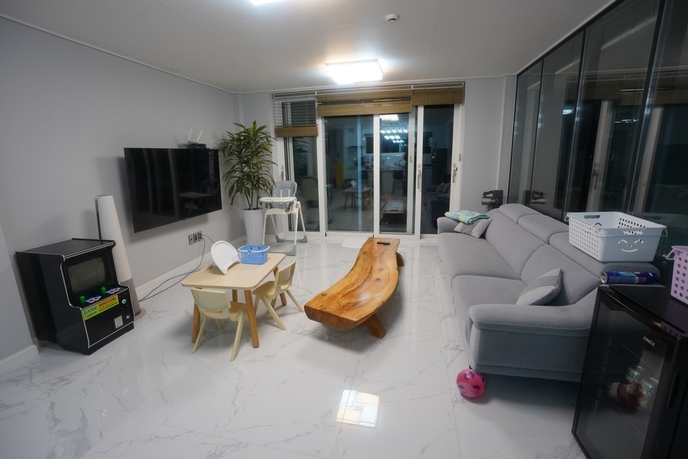 Vårt Soho House ligger vid havet. Dong-dong Bridge är ansluten, och det är ett vackert boende med nattutsikt, och det är en plats där du kan se soluppgången. Lotte stormarknad, närbutik, närbutik, Soho sashimi stad, Soho yacht rink, café, restaurang i närheten.Det finns många restauranger i närheten. Det är ett 36-pyeong utrymme, lämpligt för familj och vänner grupper på ca 6-10 personer. (Det är på tredje våningen)