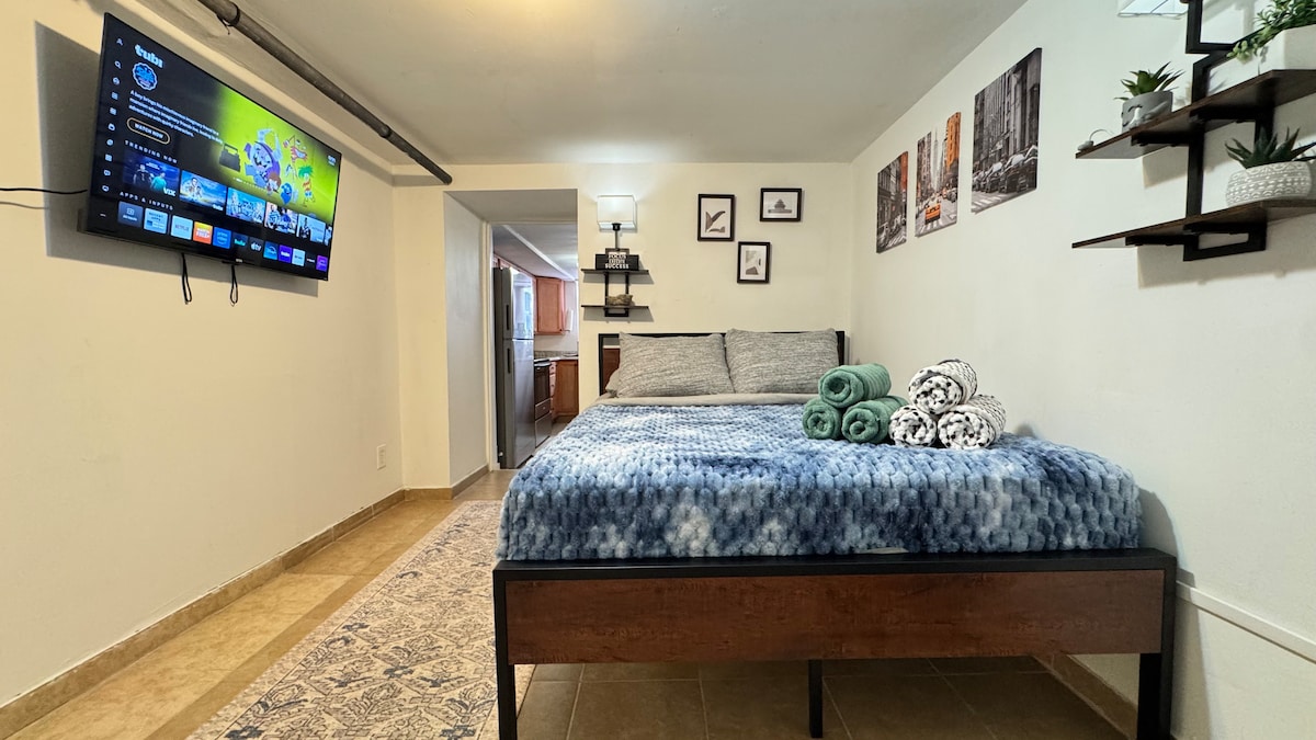 Koppla av bekvämt i denna eleganta och moderna svit med 1 sovrum utrustad med din komfort och njutning i åtanke. Beläget 15 minuter från JFK flygplats och bara några steg från Express-bussen för direkt tillgång till Manhattan och centrala Brooklyn. Perfekt för par, ensamresenärer, familjer med barn och resande proffs.