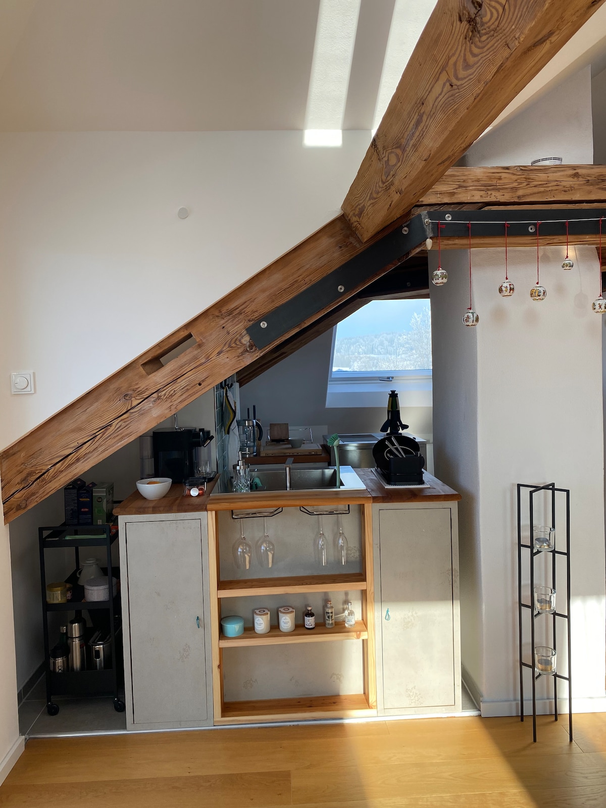 Välkommen till vårt historiska kreativa loft i det kärleksfullt restaurerade korsvirkeshuset! Denna unika loftsvåning sträcker sig över två våningar och erbjuder en perfekt blandning av historisk känsla och modern design. Njut av den öppna planlösningen, de synliga träbjälkarna och det eleganta bordtennisbordet, som också fungerar som ett bord. Ett kök samt Wi-Fi och smart-TV kompletterar erbjudandet. Upptäck den pittoreska gamla staden Eichstätt precis utanför dörren!