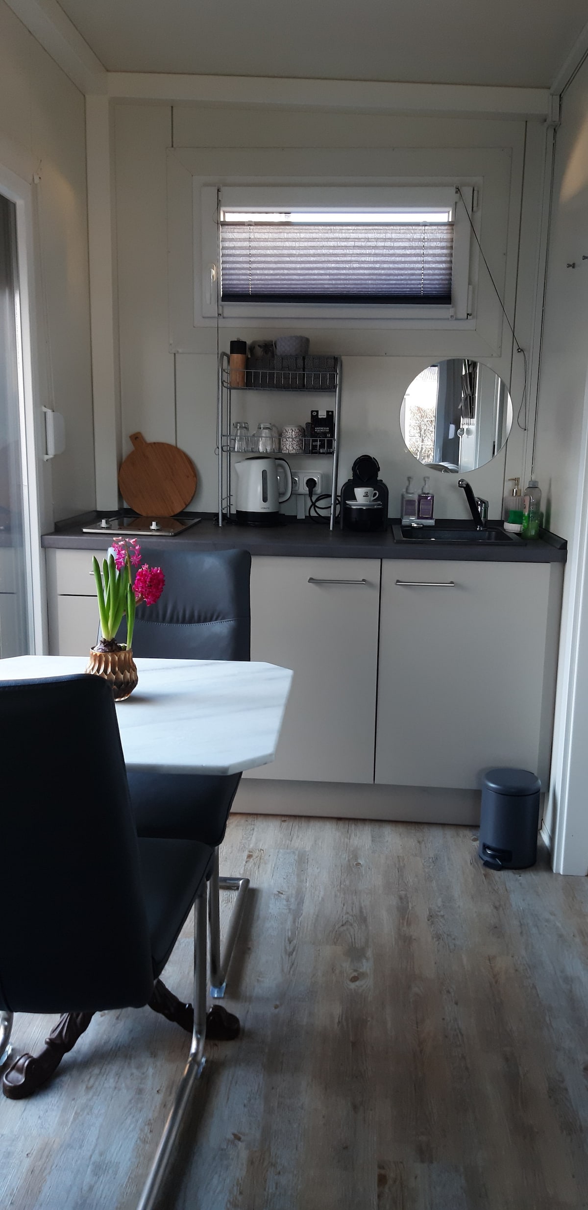 I vårt Tiny House välkomnar vi gäster från hela världen som vill bo i stadens centrum, men ändå i ett lugnt läge i grönskan. Bayreuths stadskärna kan nås på 20 minuter till fots och erbjuder, förutom operahuset som är ett världskulturarv, ett färgstarkt och livligt stadsliv. Tiny House erbjuder ett kök för matlagning och du kan äta under tak på uteplatsen även när det är dåligt väder. Badrummet är utrustat med toalett och en bekväm dusch.