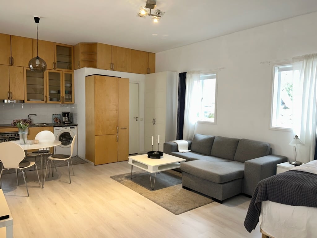 Topprenoverad 2:a i lugnt villaområde bara 15 minuter från Arlanda flygplats. Lägenheten är en välplanerad del i villa på 37 kvm med egen ingång. Sovrummet har en stor säng (180cm) och ett panoramafönster med utsikt mot en vacker trädgård (ingen insyn). Fullt utrustad och praktiskt arbetskök med maskinell utrustning. Badrummet är utrustat med dusch, wc samt kombinerad tvättmaskin/torktumlare och golvvärme. Parkering, wifi, vatten och el ingår.