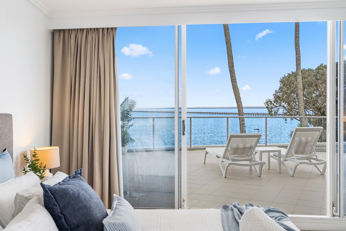 Koppla av på den privata balkongen och njut av den expansiva utsikten över havet och piren från denna eleganta lägenhet med ett sovrum. Enheten är rymlig, ljus och luftig och har en dubbelsäng, eget badrum med spa och premiumfaciliteter. Som en del av Oaks Resort and Spa-komplexet har du tillgång till det vackert inredda poolområdet som har två stora pooler och solstolar. Komplexet har också säker underjordisk parkering och ett fullt utrustat gym. Och vyn kommer att blåsa dig bort.
