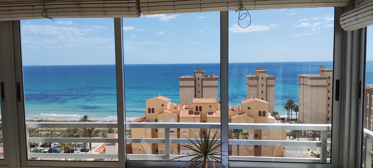 Fantastisk lägenhet med privilegierad utsikt över Tabarca ön. Spektakulär utsikt mot Medelhavet från alla rum Vakna med soluppgången och njut av solnedgången som lyser upp Tabarca ön, allt detta medan du dricker en kall öl från oändlighetsterrassen Koppla av i denna lugna lägenhet, endast avbruten av vågornas ljud, fiskebåtarna som avgår vid soluppgången och måsarna