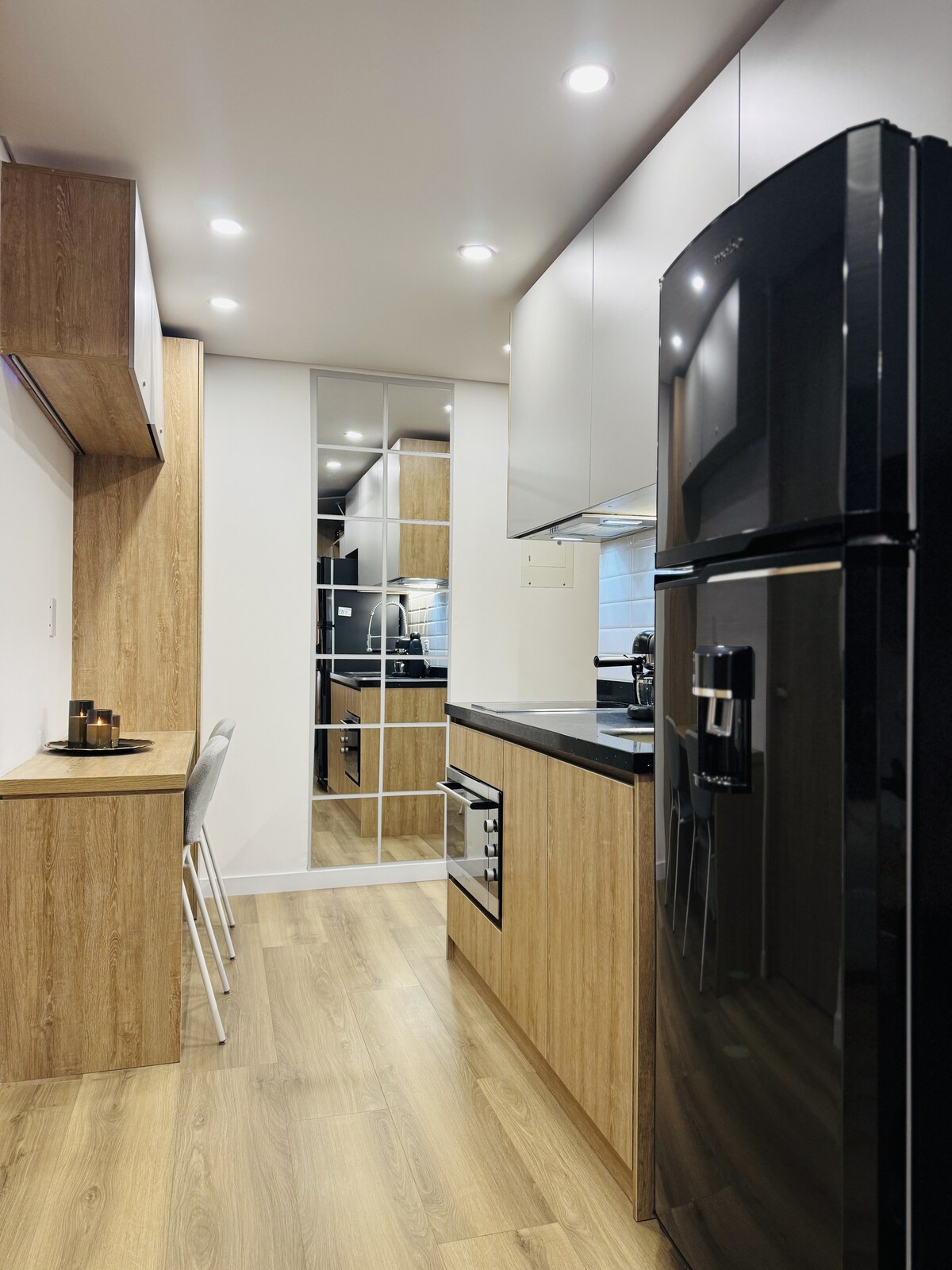 Helt ny lägenhet med en fantastisk utsikt över Bogotá och bergen från en åtta våning. En modern, nordisk och minimalistisk stil med en mysig privat terrass perfekt för BBQ och att samlas med vänner eller par. Centralt läge, nära Usaquen-marknaden och restauranger, enkel tillgång och transport. Det perfekta valet för en enda person eller ett ungt par. Lägenheten har 1 sovrum, 1,5 badrum och inkluderar tvättmaskin/torktumlare och kylskåp, privat parkering och säkerhet dygnet runt.