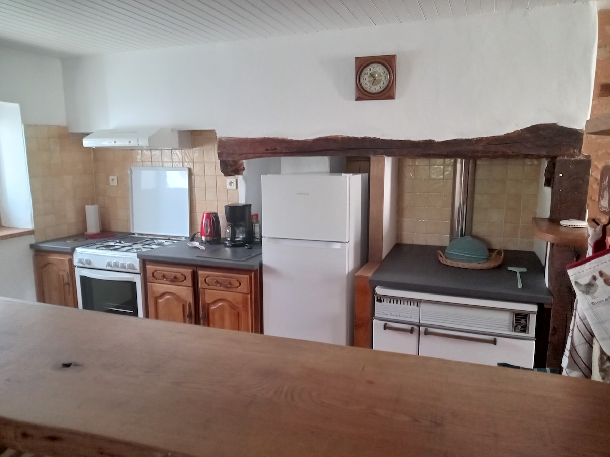 Halvfritt stenhus med privat inhägnad trädgård Stort allrum med exponerad sten och pelletsugn öppen till det utrustade köket. Det finns en 140 cm bäddsoffa 1 sovrum med en 140 säng och ett duschrum. Vi tillhandahåller grundläggande köksartiklar som olivolja, solrosolja, vinäger, salt, peppar, kaffe, te och socker. Sängkläder finns också. Exteriören har en plancha och ett matbord. privat parkering.