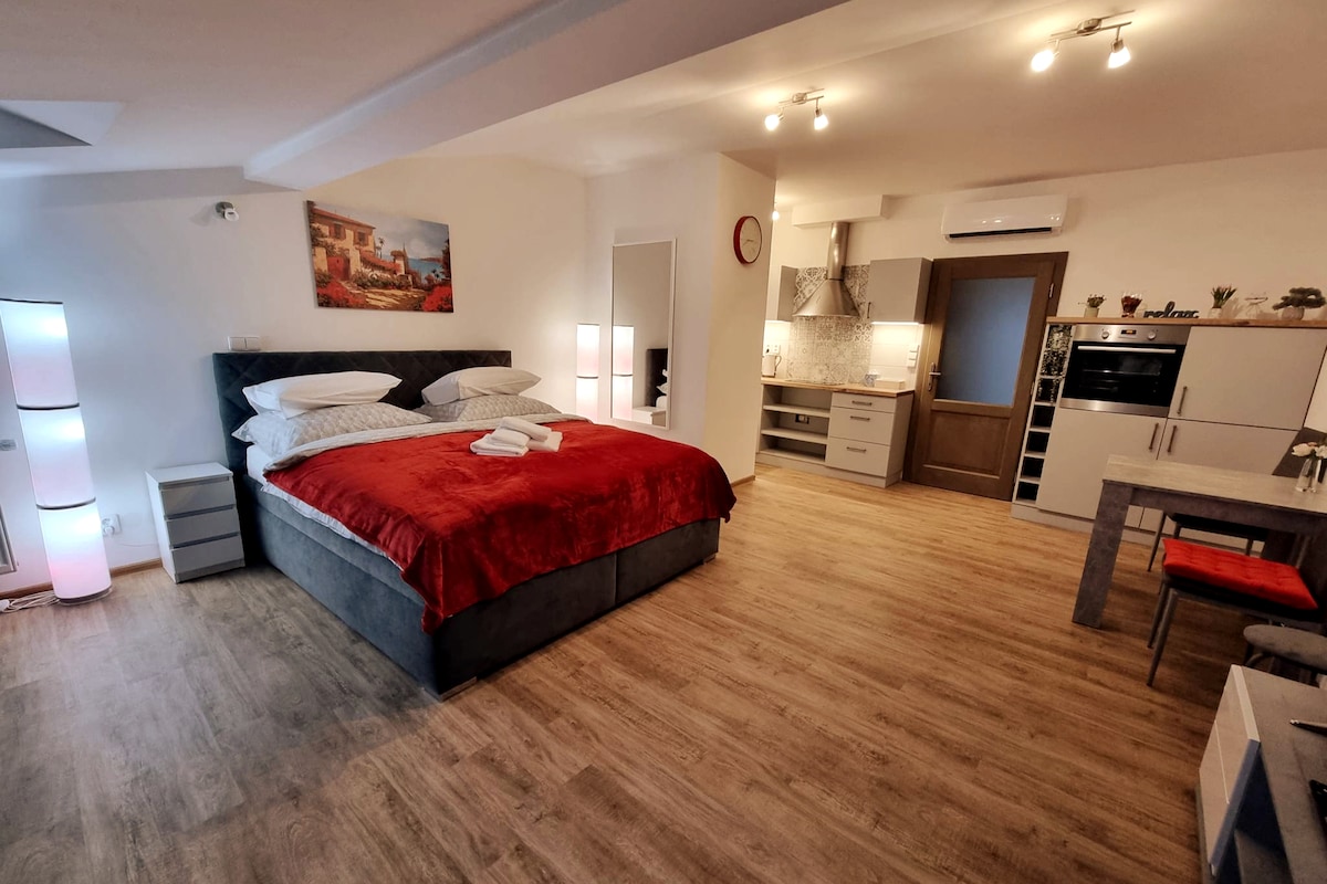 Vi välkomnar dig gärna till vårt familjehus, där du kommer att ha en lägenhet med egen ingång. Njut av ett eget badrum med ett vackert badkar, ett rymligt kök och en plats för vila eller arbete. Boendet är också lämpligt för längre perioder, eftersom du hittar allt som hemma. Tvättmaskin, fullt utrustat kök med diskmaskin, kaffebryggare, spishäll och ugn. Parkering framför huset, höghastighets Wi-Fi eller förvaring av cyklar eller skidor är en självklarhet. Vi ser fram emot att träffa dig. Mikuláš och Eva med familj.