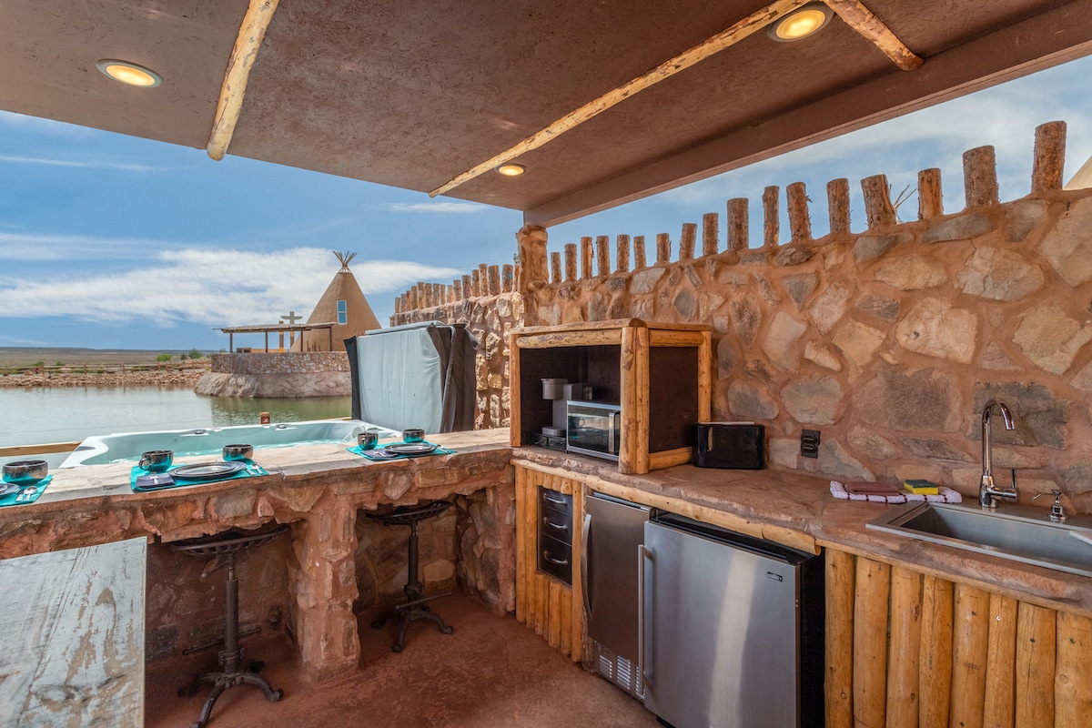 Lyxig Glamping Tipi nära Zion National Park Upplev en modern twist på historiska Western Living Fly till lugnet i södra Utah och bo i en lyxig tipi som blandar rustik charm med modern komfort. Njut av hisnande utsikt. Njut av den fridfulla miljön när du kopplar av vid din privata gaseldstad och tittar upp på en himmel full av stjärnor. Bekvämligheter på semesteranläggning inkluderar: Uppvärmd pool och bubbelpool Pickleballbanor Fiskedamm Corn Hole Promenadstigar Amfiteater Detaljhandel på plats