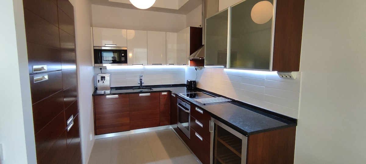 One-bedroom apartment furnished for three people. The price of accommodation includes electricity and bed linen. The apartment has everything necessary for short or long term accommodation. The modern kitchen has a dishwasher and a Moccamaster coffee machine, in addition to which there are all the necessary utensils for cooking. The bedrooms have two beds that can be separated if necessary. The apartments also have a glazed balcony.