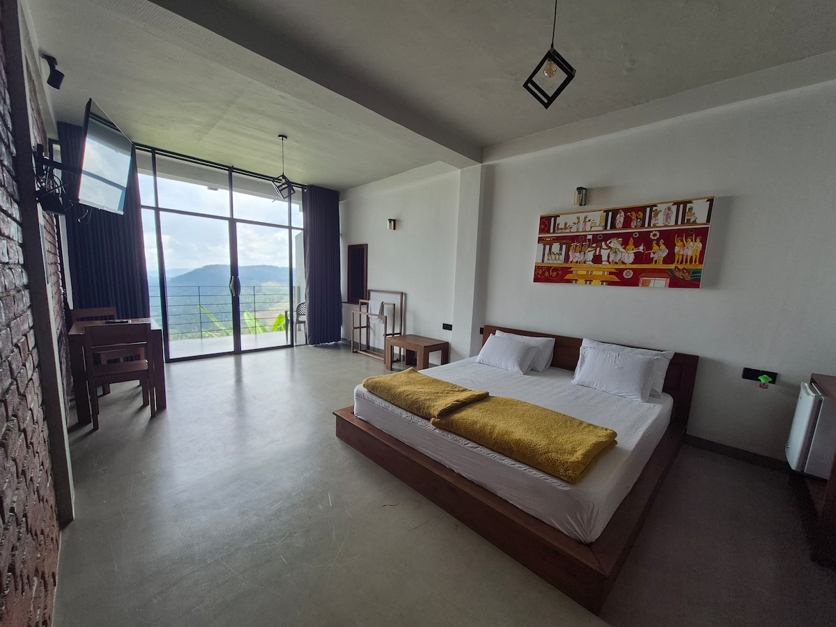 Du upplever den ultimata komforten i vårt Deluxe-dubbelrum på Hotel Mandakini. Detta rum är utformat för avkoppling och har en egen balkong med hisnande utsikt över Ellas ikoniska berg. Njut av moderna bekvämligheter, en bekväm dubbelsäng (king size) och höghastighets-Wi-Fi. Det ligger bara en kort promenad från Ella stad och är den perfekta basen för dina äventyr. Du kommer att älska all uppmärksamhet på detaljer på detta eleganta ställe.