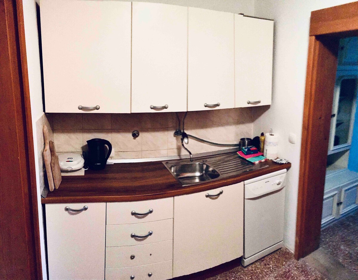 Lägenheten ligger i, förmodligen, vackraste delen av staden, med utsikt över Gamla stan i Korčula. Avstånd från stadens centrum ligger bara några minuters promenad, också Gamla stan. Det finns små stadsstränder och platser att ta ett dopp framför lägenheten. Lägenheten är nyrenoverad, trevlig och snygg och ljus. Du kan njuta av lugn och ro men också vara mycket nära stadens centrum. Centrum ligger 3 minuters promenad,även Gamla stan med massor av barer och restauranger.Färjeterminalen ligger i närheten. Skicka mig alla frågor du kan tänkas ha, jag hjälper gärna till om du vill.
