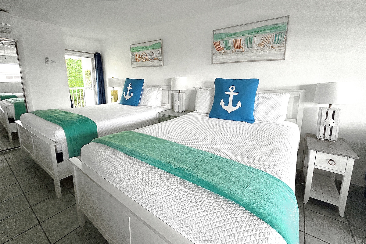 Omfamna charmen i Keys i vår fridfulla tillflyktsort för par eller familjer. Inbäddat bara några steg från en uppvärmd pool och havet, erbjuder denna tillflyktsort med marin-tema king komfort, en mysig bäddsoffa och en skärmad balkong för intima kvällar. Dyk ner i lokala äventyr med tillgänglig strandutrustning, eller koppla av i vårt luftiga utrymme, med ett fullt utrustat kök och smakfull inredning. Perfekt för dem som söker en blandning av avkoppling och utforskning av havet, det är din perfekta kustnära fristad.
