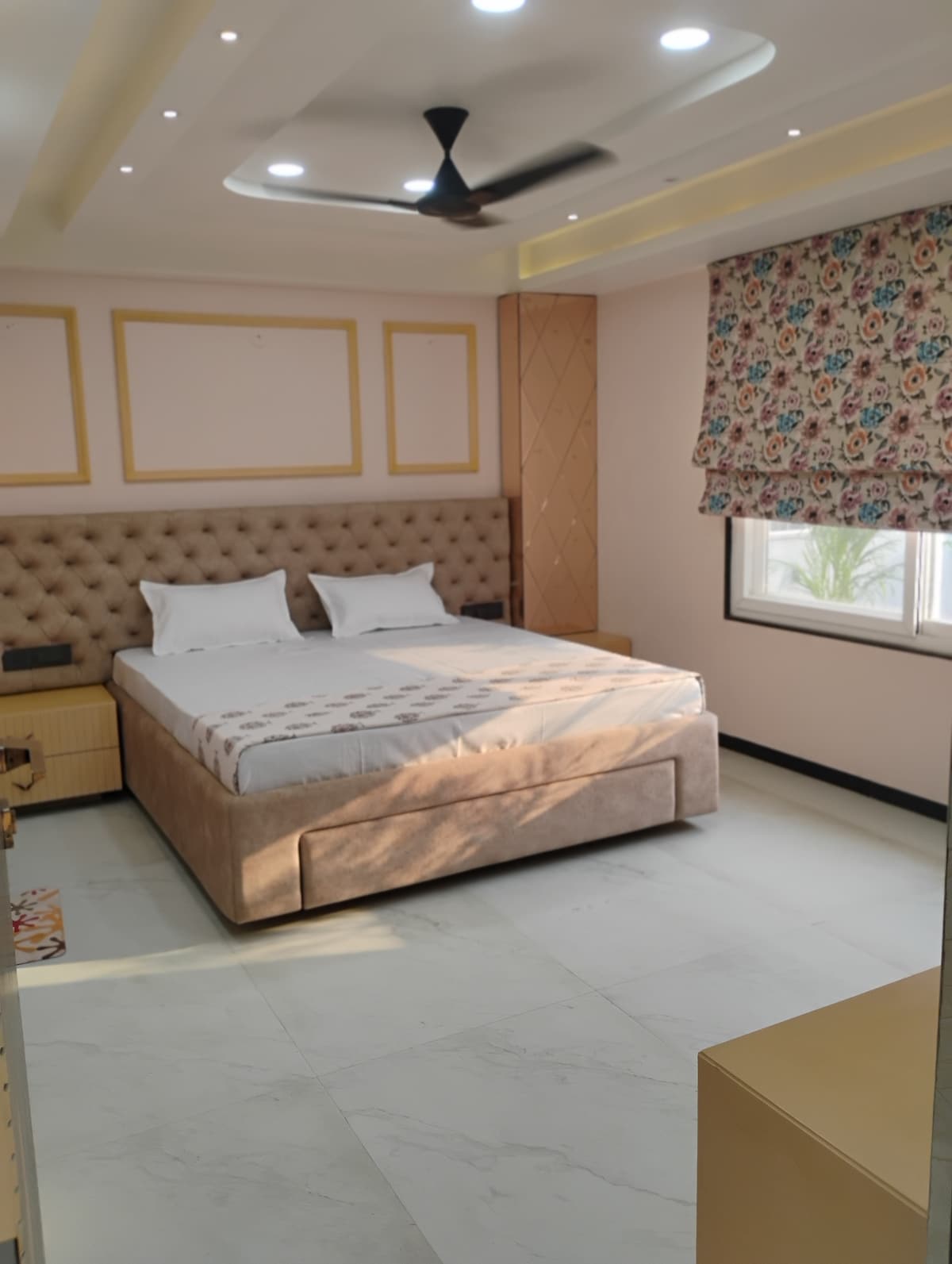 Denna eleganta villa med 2 sovrum ligger i den mycket eftertraktade Nemi Sagar Colony i Vaishali Nagar, Jaipur. Med förstklassiga möbler, ett fullt utrustat kök, ett eget badrum med en modern dusch och en upphöjd jacuzzi för två personer erbjuder den en blandning av komfort och lyx. Höghastighetsinternet finns tillgängligt, och villan ligger bara en promenad från några av stadens bästa restauranger, kaféer och butiker, vilket gör det till det perfekta valet för dem som värdesätter både bekvämlighet och sofistikering.