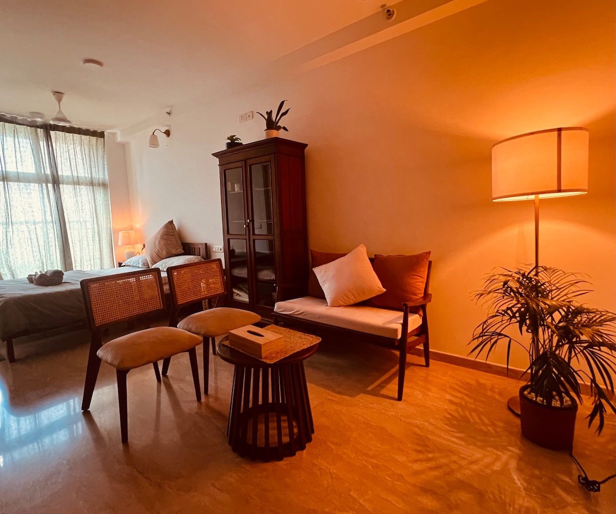 Kliv in i tidlös charm i vår egyptiska studiolägenhet i Hiranandani Estate, Thane. Detta eleganta utrymme har en plyschsäng, bäddsoffa, Smart TV, Wi-Fi, ett fullt utrustat kök, tvättmaskin och daglig städning. Njut av toalettartiklar, ångtvättade handdukar och säkerhet dygnet runt. Det ligger nära kaféer, kliniker och "The Walk" och är perfekt för affärer, behandlingsvistelser eller en avkopplande semester.