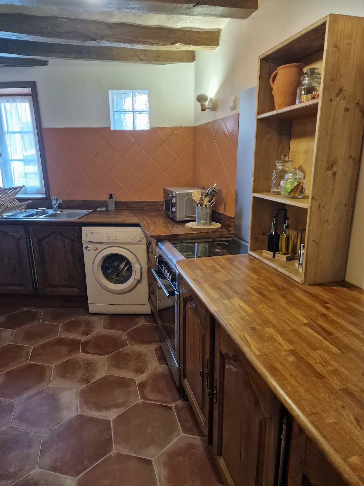 Välkommen till Grotte du Moulin! Denna naturliga loft är infälld i en kalkstenshög och kommer att överraska dig med dess öppenhet. Den består av ett stort kök öppet mot vardagsrummet och ett sovrum med badrum åtskilt av en skjutbar garageport. I sovrummet har du en dubbelsäng (160cm) och i vardagsrummet en enkelsäng (90cm) med en icke cabrioletsoffa som kan användas som en liten enkelsäng.