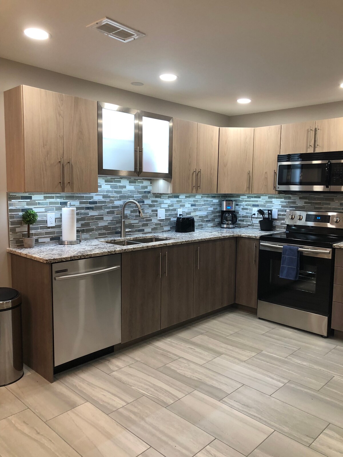 Välkommen till vår centralt belägna privata enhet. Stora fönster för att lysa upp det fullt utrustade köket, ett underhållningsutrymme med en 55-tums smart-TV, brädspel, skivspelare, ett bekvämt sovrum med en Queen-säng och luftkonditionering och stort badrum. Njut av den privata uteplatsen bredvid din personliga parkeringsplats. Köket inkluderar: - Brödrost - Keurig kaffemaskin + återanvändbara koppar - Spis - Vattenkokare - Kastruller och stekpannor - Redskap och andra köksartiklar - Mikrovågsugn - Minikylskåp med frysfack