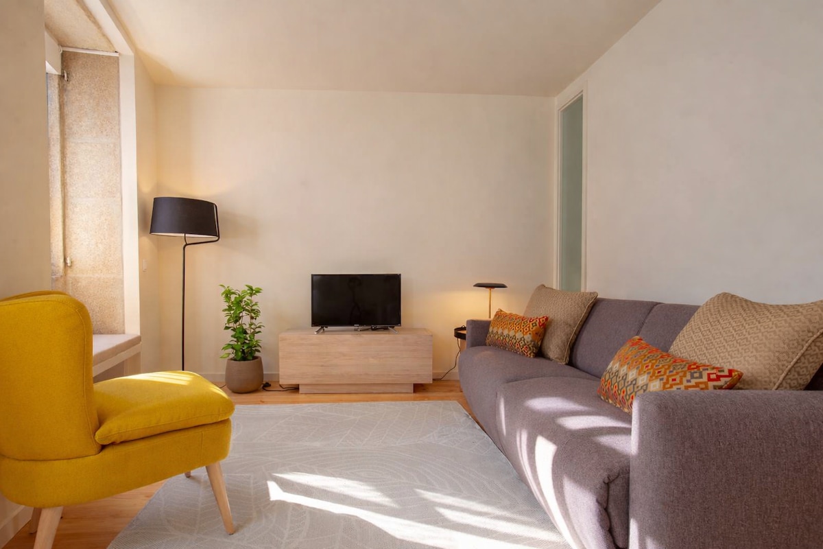 Välkommen till din fridfulla fristad med utsikt över den fascinerande floden Douro. Denna charmiga lägenhet med 1 sovrum kombinerar sömlöst komfort och elegans och lovar en härlig vistelse. Upptäck lugnet i det mysiga sovrummet, med en plysch queen-size-säng prydd med mjuka sängkläder, som erbjuder dig en fridfull tillflyktsort efter en dags utforskning. Det välutrustade köket bjuder in till kulinariska äventyr med moderna apparater, vilket säkerställer att dina matlagningsinsatser blir enkla.